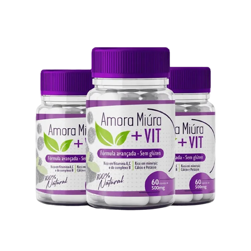 - Amora Miúra +VIT foi desenvolvido para combater os principais sintomas da menopausa como as ondas de calor (fogachos), suores noturnos, insônia, stress, ansiedade, mudança de humor, ganho de peso, queda de cabelo, entre outros benefícios. É um produto 100% natural, produzido através do extrato da amora sem efeitos colaterais. Sua fórmula é Rica em vitaminas essenciais, como a vitamina A e C e do complexo B, além de cálcio e potássio.
